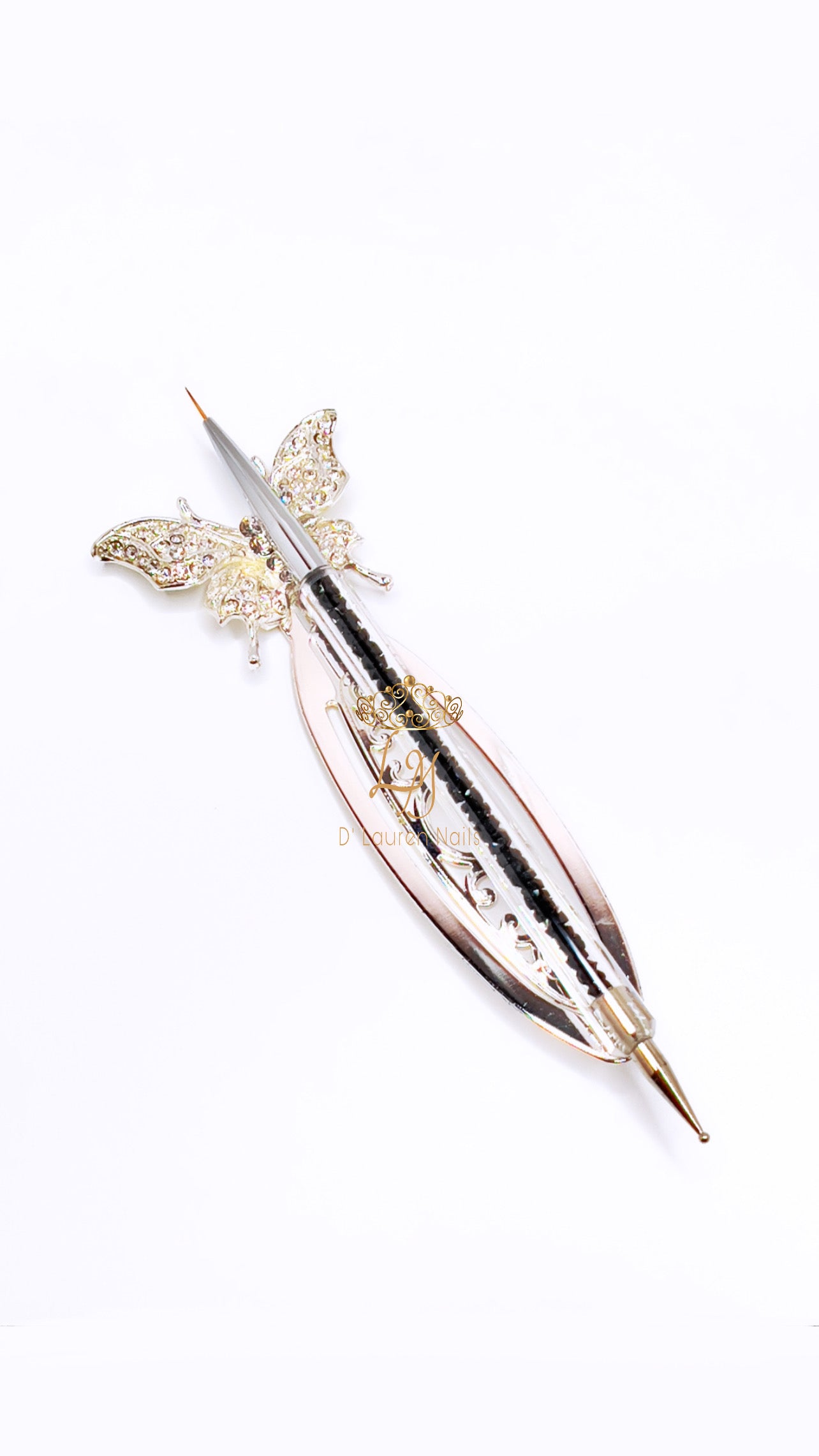 Realiza los más bellos diseños sobre acrílicos o geles con este implemento de belleza. Ya sea que esté creando diseños elaborados, o simplemente puntos y líneas, este hermoso pincel/punto es imprescindible para todos los manicuristas. El interior del cepillo contiene hermosos cristales que se mueven por todos lados.