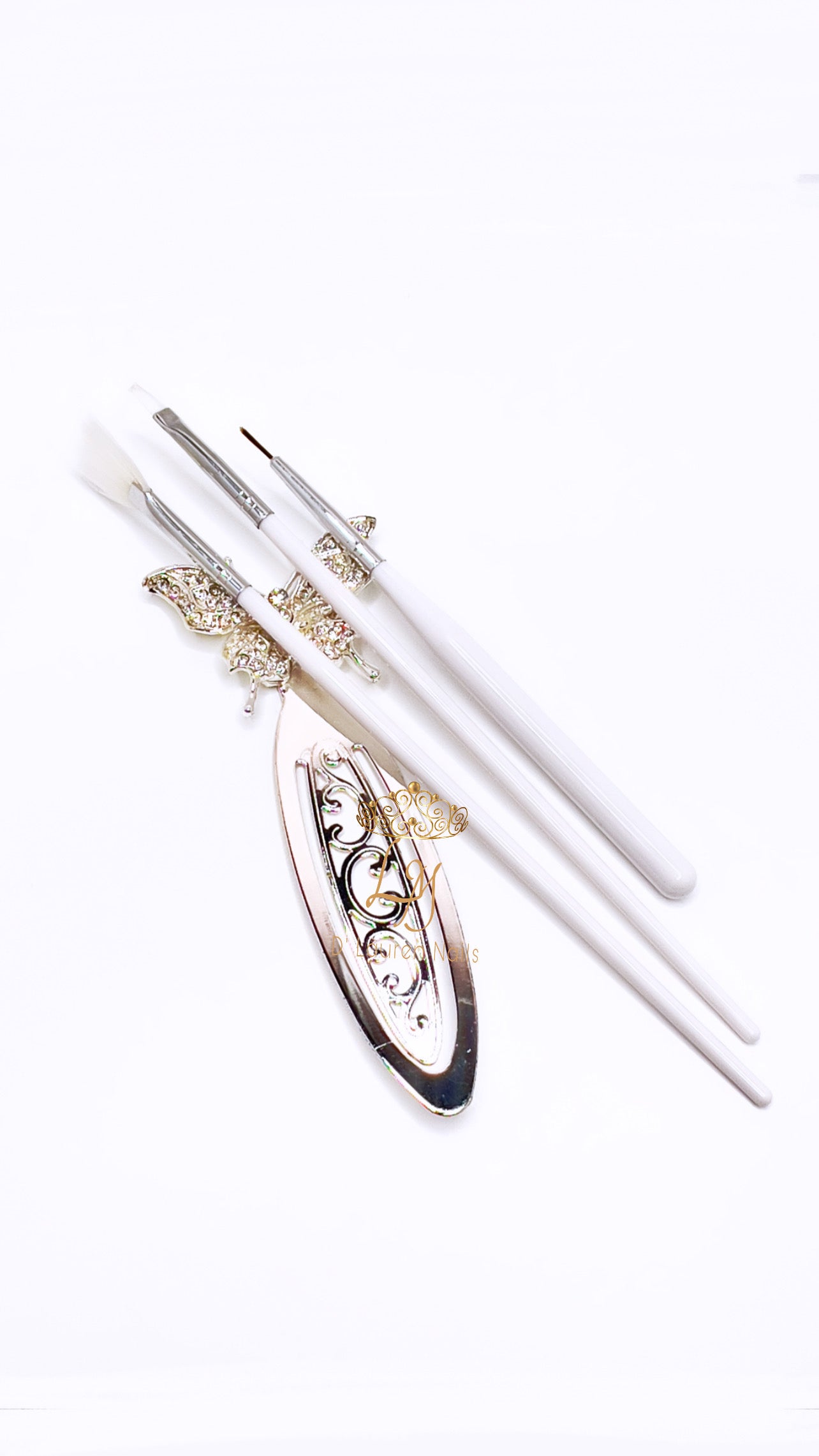 *Este juego de brochas es el juego perfecto para brillos, contorno de gel y flores medianas.