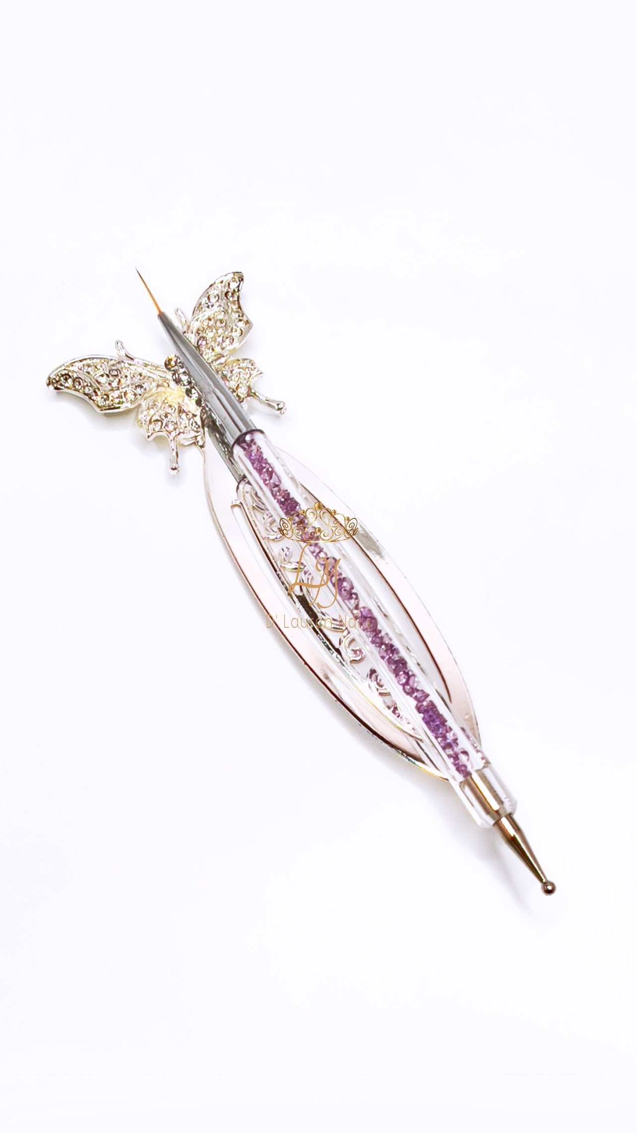 Realiza los más bellos diseños sobre acrílicos o geles con este implemento de belleza. Ya sea que esté creando diseños elaborados, o simplemente puntos y líneas, este hermoso pincel/pincel es imprescindible para todos los manicuristas. El interior del cepillo contiene hermosos cristales que se mueven por todos lados.