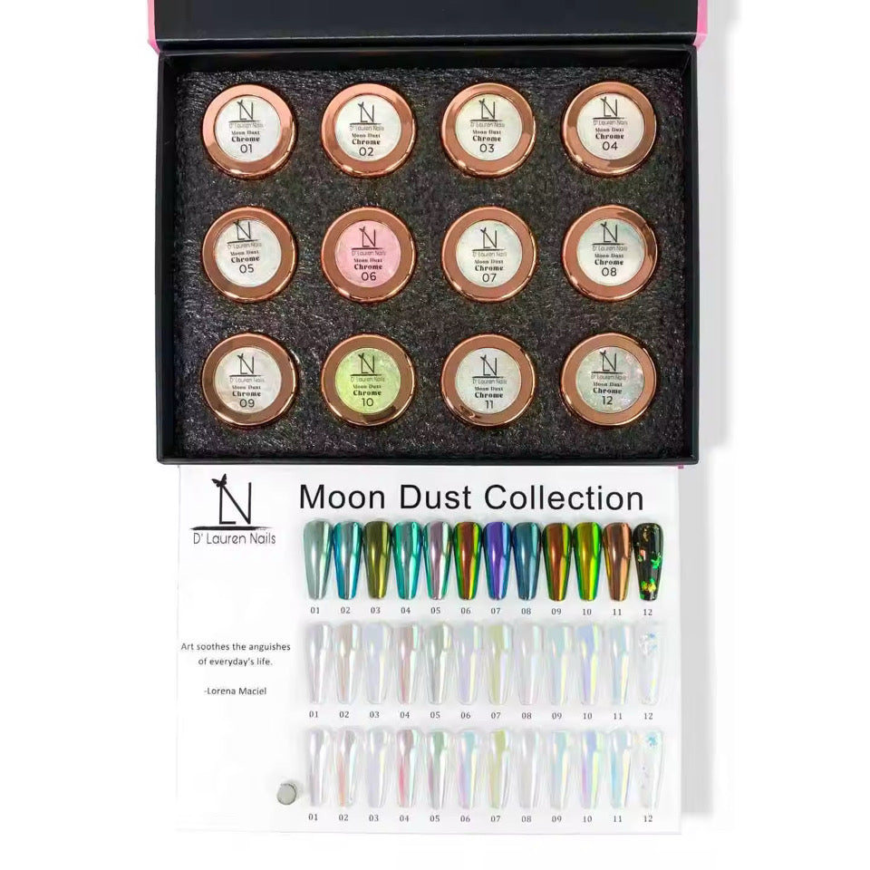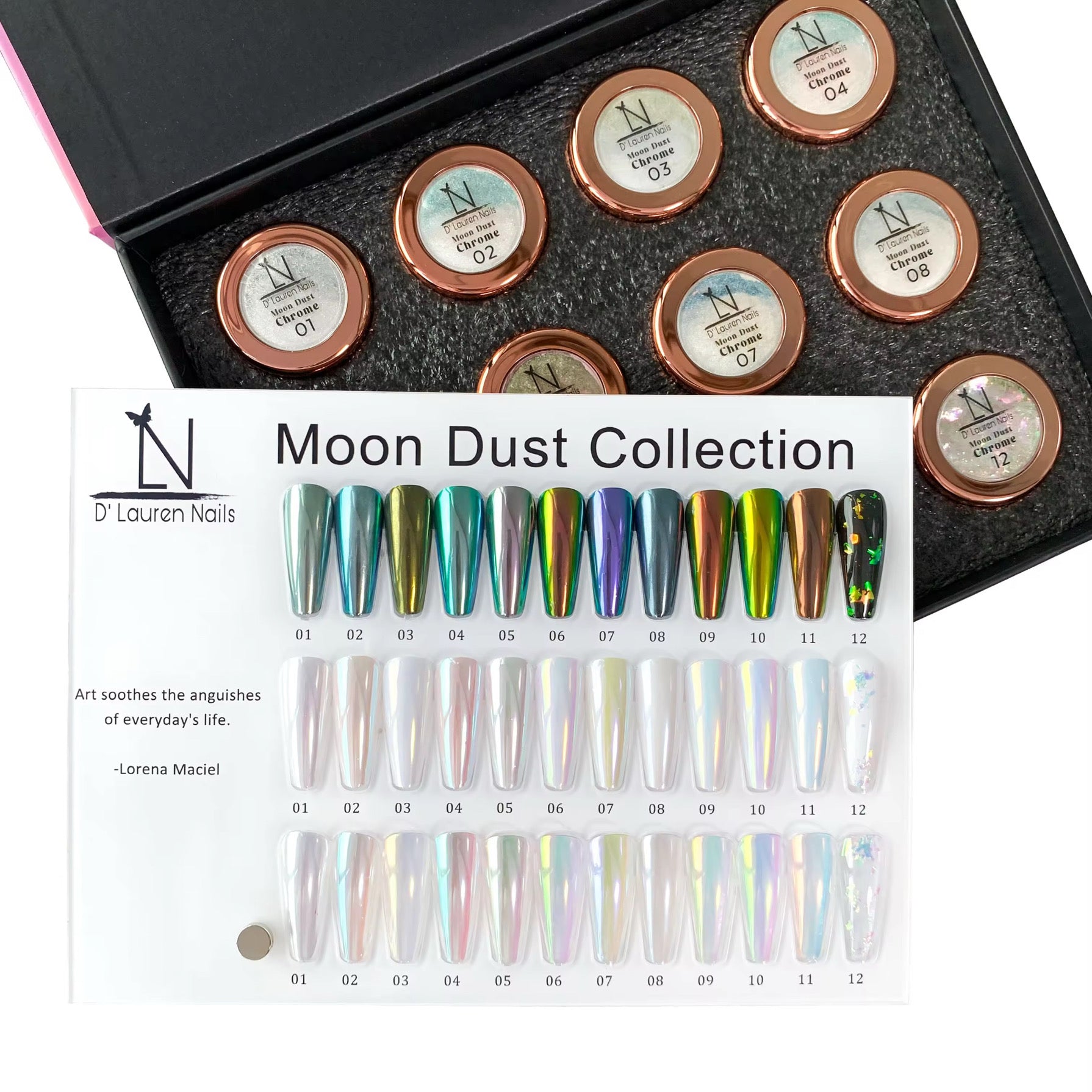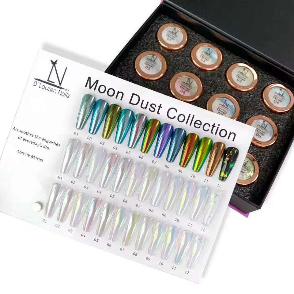 Immerse yourself in the world of chrome powders with our Moon Dust Chrome Collection. With 11 top-quality monochromatic & mirror effect shades, and also exclusive jar of monochromatic flakes, this set provides endless opportunities to create a perfect and breathtaking appearance.